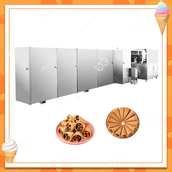 - Enrollar conos: Coloque las hojas de galleta en la máquina para enrollar, luego enrolle estas hojas en conos de helado. Estos conos tienen un tamaño uniforme con muy poca rotura.