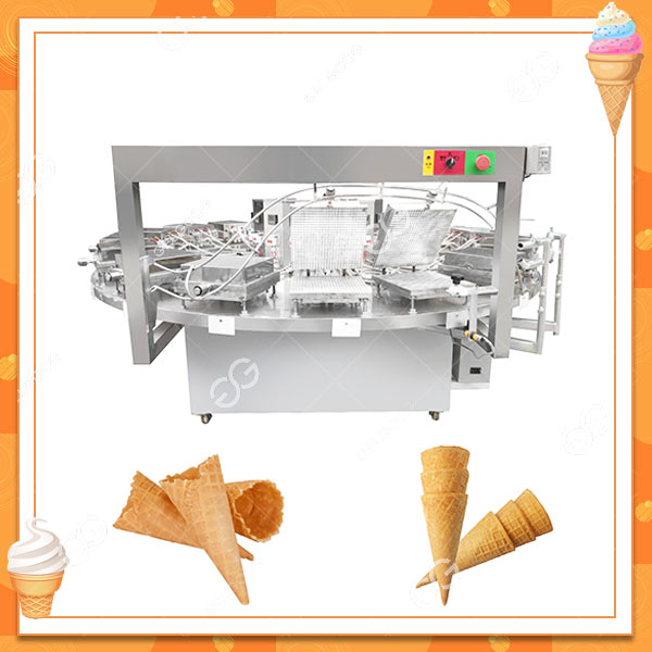 La máquina consta principalmente de una máquina para hornear, un barril de almacenamiento, una máquina para enrollar y una batidora. Puede hornear la masa en conos de azúcar crujientes con un color marrón.